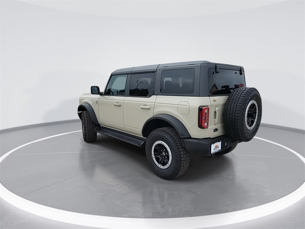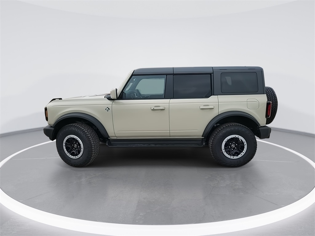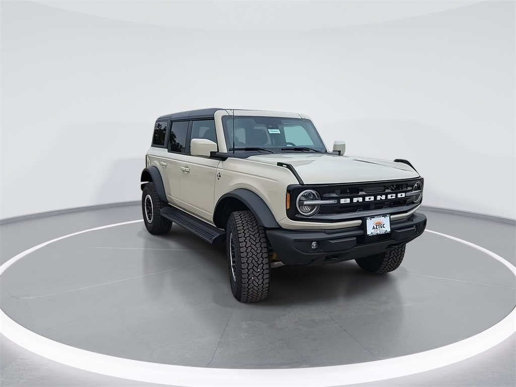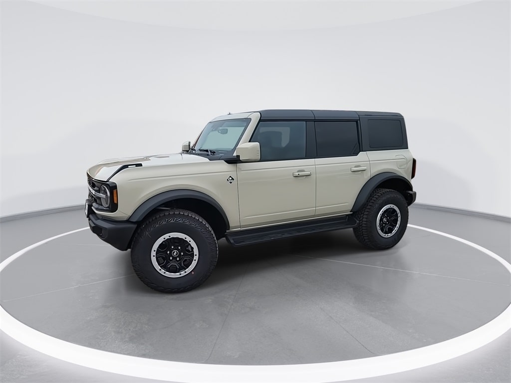 This 2025 Ford Bronco Outer Banks in Desert Sand comes with the following features: 2.7L EcoBoost V6 10-Speed Automatic 4WD 18" Bright Machined Aluminum Wheels, 3.73 Axle Ratio, 4-Wheel Disc Brakes, 7 Speakers, ABS brakes, Air Conditioning, Alloy wheels, AM/FM radio: SiriusXM with 360L, AM/FM Stereo, Auto High-beam Headlights, Auto-dimming Rear-View mirror, Automatic temperature control, Brake assist, Compass, Connected Navigation, Delay-off headlights, Driver door bin, Driver vanity mirror, Dual front impact airbags, Dual front side impact airbags, Electronic Stability Control, Emergency communication system: 911 Assist, Exterior Parking Camera Rear, Front anti-roll bar, Front Bucket Seats, Front Center Armrest, Front dual zone A/C, Front fog lights, Front reading lights, Front wheel independent suspension, Fully automatic headlights, Heated door mirrors, Heated front seats, Heated Leather-Trimmed/Vinyl Bucket Seats, Heated steering wheel, Illuminated entry, Integrated roll-over protection, Internet access capable: FordPass Connect, Leather Shift Knob, Low tire pressure warning, Navigation system: Connected Navigation, Occupant sensing airbag, Outside temperature display, Overhead airbag, Overhead console, Panic alarm, Passenger door bin, Passenger vanity mirror, Power door mirrors, Power driver seat, Power passenger seat, Power steering, Power windows, Radio data system, Rear seat center armrest, Remote keyless entry, Security system, SiriusXM w/360L, Speed control, Split folding rear seat, Steering wheel mounted audio controls, SYNC 4, Tachometer, Telescoping steering wheel, Tilt steering wheel, Traction control, Trip computer, Variably intermittent wipers, and Voltmeter. Price includes: $2500 - Retail Customer Cash. Exp. 03/31/2026