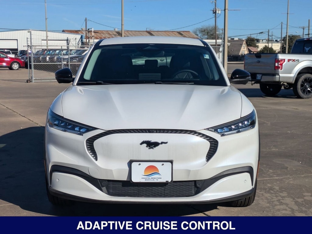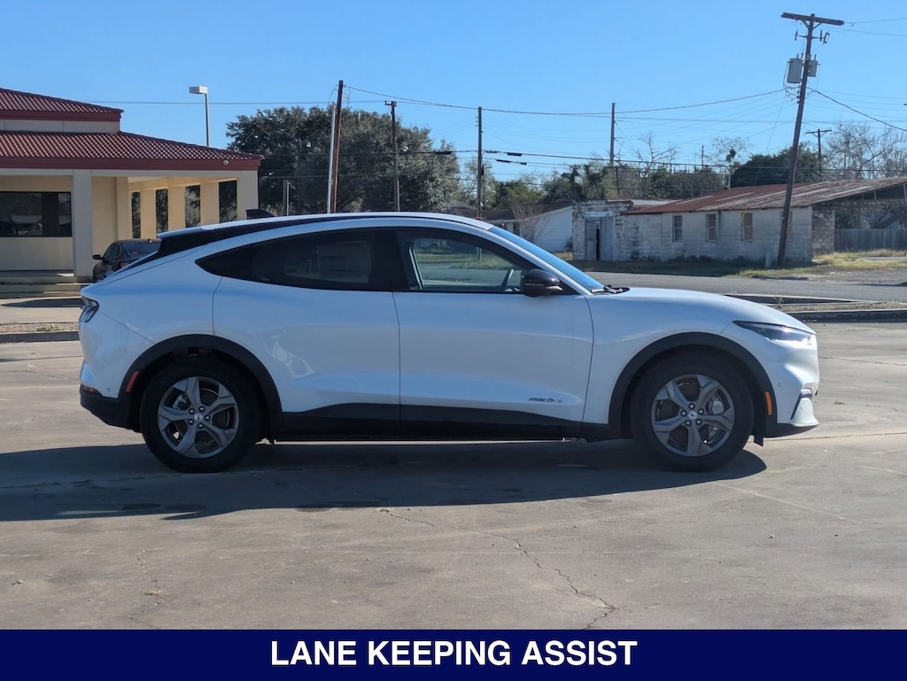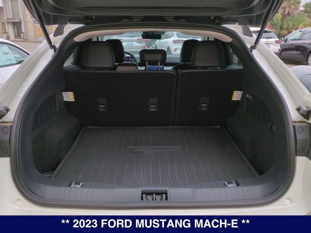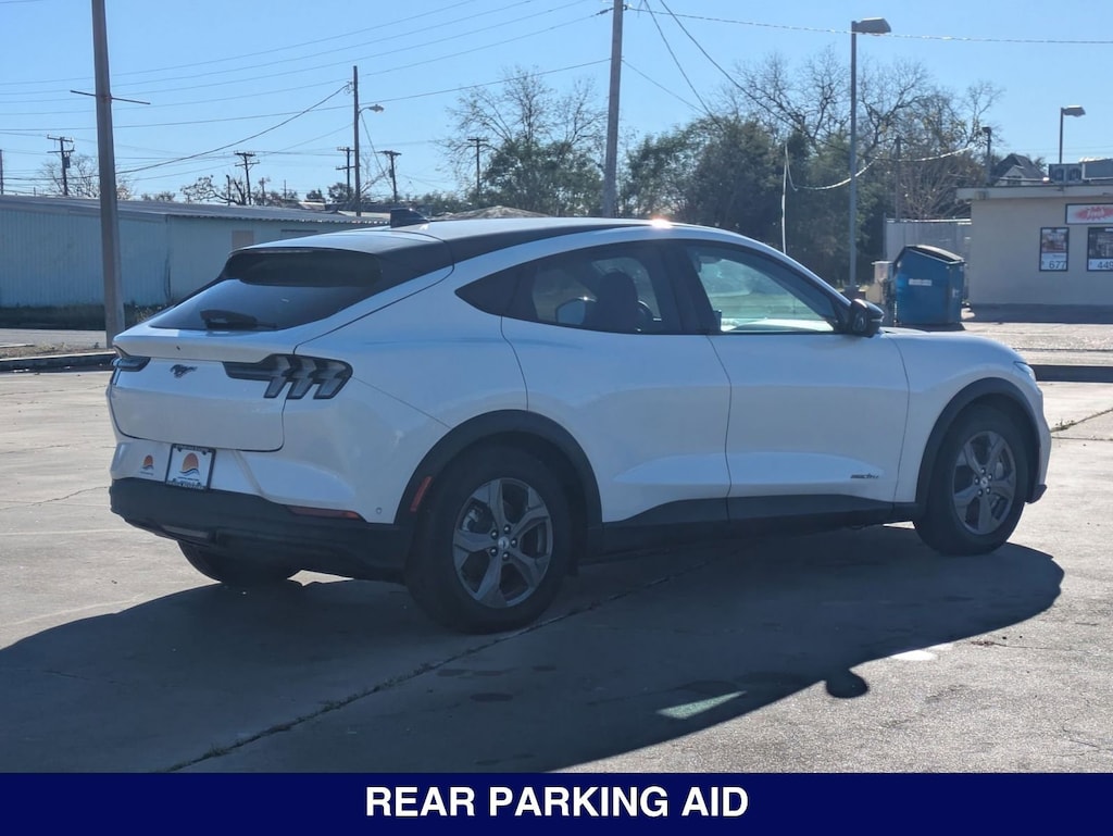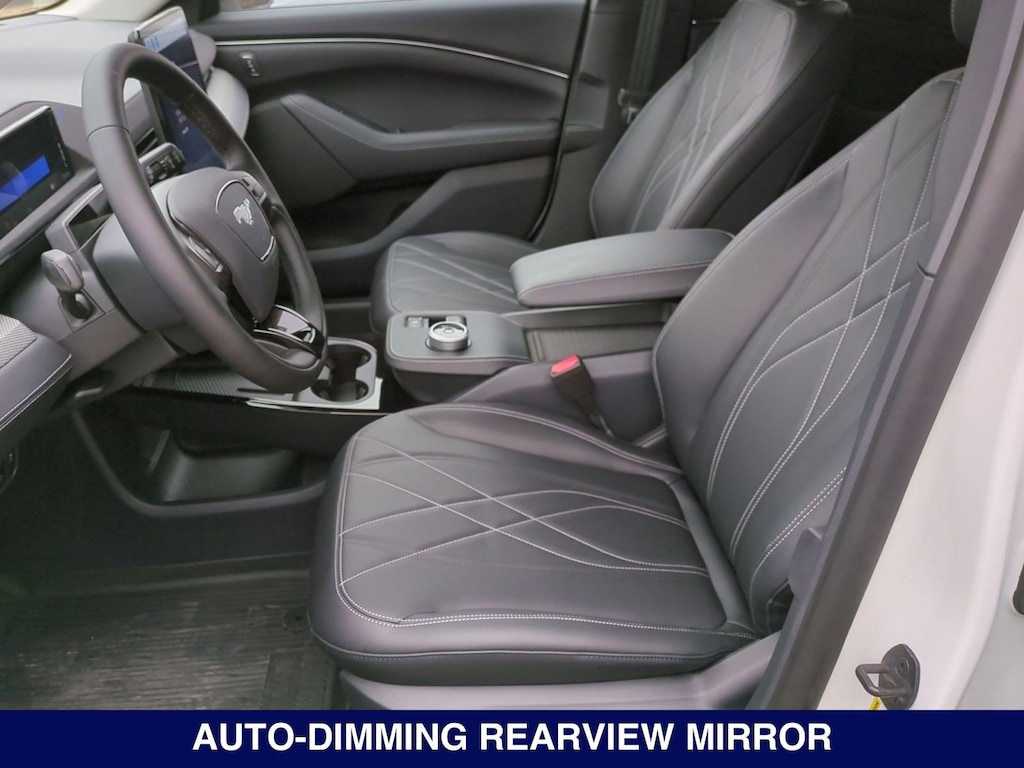 Mustang Mach-E Select, Star White Metallic Tri-Coat, Black Onyx, 1st & 2nd Row Floor Liners w/o Carpet Mats, 6 Speakers, ActiveX Bucket Seats, AM/FM radio: SiriusXM with 360L, AM/FM Stereo, Auto High-beam Headlights, Brake assist, Cargo Floor Liner, Comfort Package Lite, Delay-off headlights, Electronic Stability Control, Equipment Group 100A, Exterior Parking Camera Rear, Front Bucket Seats, Front Center Armrest, Front dual zone A/C, Fully automatic headlights, Heated Front Row Seats, Heated Steering Wheel, Interior Protection Package (Pre-Installed), Memory Driver's Seat & Sideview Mirrors, Mobile Power Cord (120V/240V), Navigation System, Panic alarm, Power windows, Radio data system, Remote keyless entry, Security system, SiriusXM Radio w/360L, Steering wheel mounted audio controls, SYNC 4A w/Enhanced Voice Recognition.