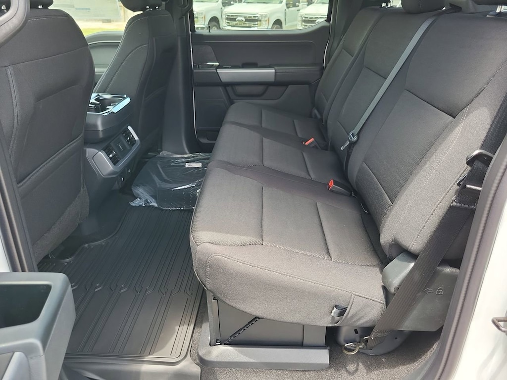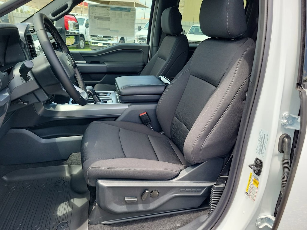 This 2025 Ford F-150 XLT in Oxford White comes with the following features: 3.5L PowerBoost Full-Hybrid V6 10-Speed Automatic 4WD 3.5L PowerBoost Full-Hybrid V6 and 4WD GVWR: 6,650 lbs Payload Package, 3.5L PowerBoost Full-Hybrid V6, 4WD, 3.55 Axle Ratio, 4-Wheel Disc Brakes, 6 Speakers, ABS brakes, Air Conditioning, Alloy wheels, AM/FM radio: SiriusXM with 360L, Auto High-beam Headlights, Brake assist, Bumpers: chrome, Chrome wheels, Cloth 40/20/40 Front Seat, Compass, Delay-off headlights, Driver door bin, Driver vanity mirror, Dual front impact airbags, Dual front side impact airbags, Electronic Stability Control, Emergency communication system: SYNC 4 911 Assist, Front anti-roll bar, Front Center Armrest, Front fog lights, Front reading lights, Front wheel independent suspension, Fully automatic headlights, Heated door mirrors, Illuminated entry, Low tire pressure warning, Occupant sensing airbag, Outside temperature display, Overhead airbag, Overhead console, Panic alarm, Passenger door bin, Passenger vanity mirror, Power door mirrors, Power steering, Power windows, Radio data system, Radio: AM/FM Stereo w/SiriusXM 360L, Rear Parking Sensors, Rear reading lights, Rear step bumper, Rear window defroster, Remote keyless entry, Security system, Speed control, Split folding rear seat, Steering wheel mounted audio controls, SYNC 4 w/Enhanced Voice Recognition, Tachometer, Telescoping steering wheel, Tilt steering wheel, Traction control, Trip computer, Variably intermittent wipers, Voltmeter, and Wheels: 18" Chrome-Like PVD.