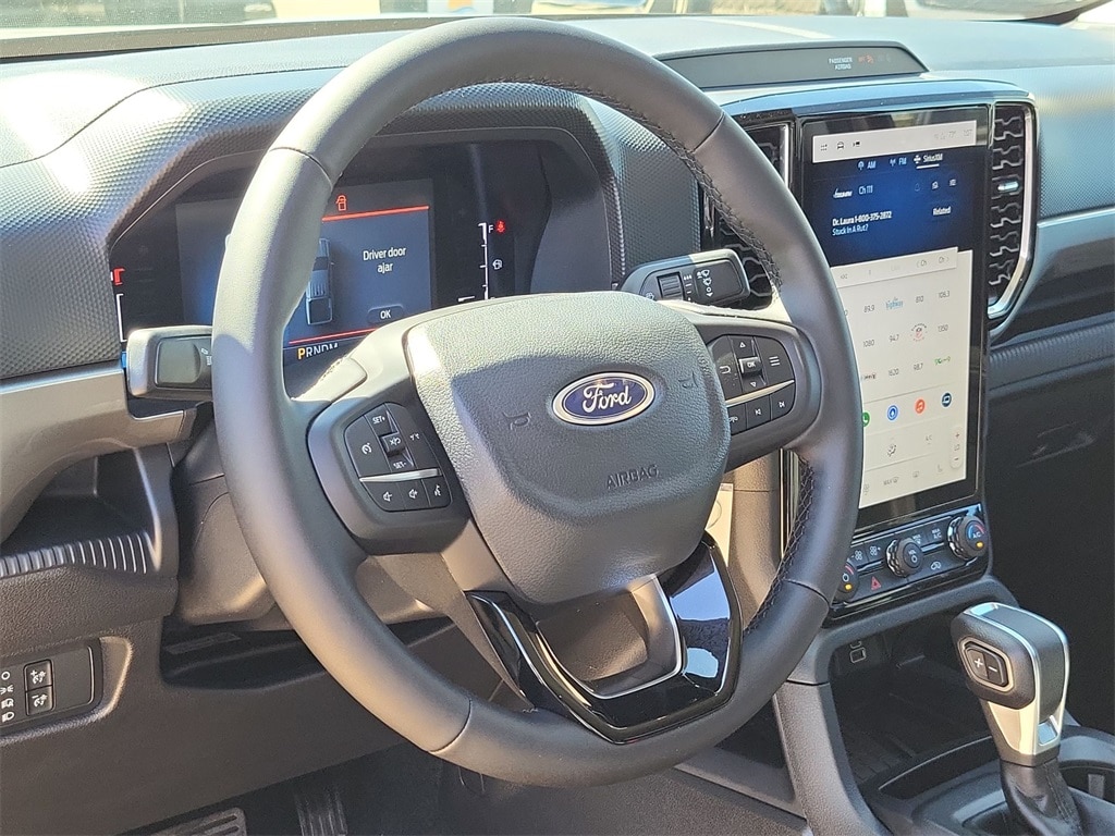 This 2025 Ford Ranger XLT in Gray comes with the following features: EcoBoost 2.3L I4 GTDi DOHC Turbocharged VCT 10-Speed Automatic RWD Sport Appearance Package (Gray Painted Center Bar & Grille Surround, Gray Painted Front Fascia & Rear Bumper, and Sport Box Decal), 3.73 Axle Ratio, 4-Wheel Disc Brakes, 6 Speakers, ABS brakes, Air Conditioning, Alloy wheels, AM/FM radio: SiriusXM, AM/FM Stereo, Auto High-beam Headlights, Auto-dimming Rear-View mirror, Brake assist, Cloth Front Bucket Seats, Compass, Delay-off headlights, Driver door bin, Driver vanity mirror, Dual front impact airbags, Dual front side impact airbags, Electronic Stability Control, Emergency communication system: SYNC 4 911 Assist, Front anti-roll bar, Front Bucket Seats, Front Center Armrest, Front fog lights, Front reading lights, Front wheel independent suspension, Fully automatic headlights, Illuminated entry, Leather Shift Knob, Low tire pressure warning, Navigation system: Connected Navigation, Occupant sensing airbag, Outside temperature display, Overhead airbag, Overhead console, Panic alarm, Passenger door bin, Passenger vanity mirror, Power door mirrors, Power steering, Power windows, Rear reading lights, Rear seat center armrest, Rear step bumper, Rear window defroster, Remote keyless entry, Security system, SiriusXM Satellite Radio, Speed control, Speed-sensing steering, Steering wheel mounted audio controls, SYNC 4A w/Connected Navigation, Telescoping steering wheel, Tilt steering wheel, Traction control, Trip computer, Variably intermittent wipers, Voltmeter, and Wheels: 17" Gray-Painted Aluminum.