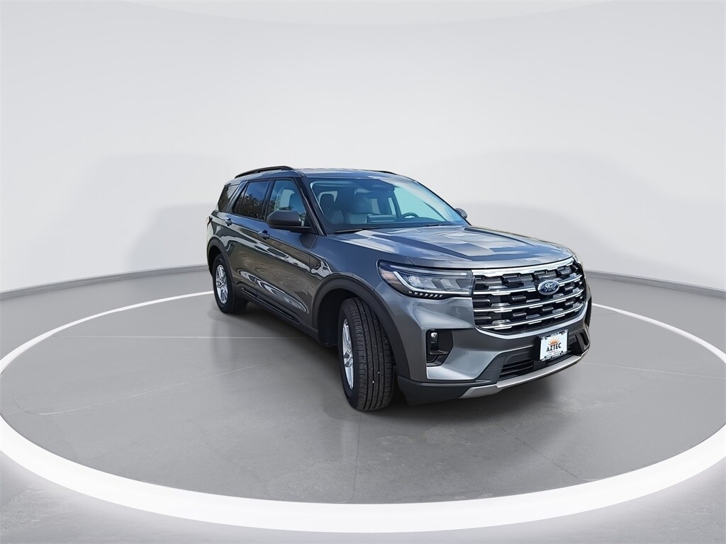 This 2026 Ford Explorer Active in Carbonized Gray Metallic comes with the following features: 2.3L EcoBoost I-4 10-Speed Automatic RWD 3rd row seats: bench, 4-Wheel Disc Brakes, 6 Speakers, ABS brakes, Air Conditioning, Alloy wheels, AM/FM radio: SiriusXM with 360L, AM/FM Stereo, Apple CarPlay/Android Auto, Auto High-beam Headlights, Automatic temperature control, Brake assist, Bumpers: body-color, Compass, Delay-off headlights, Driver door bin, Driver vanity mirror, Dual front impact airbags, Dual front side impact airbags, Electronic Stability Control, Emergency communication system: 911 Assist, Exterior Parking Camera Rear, Four wheel independent suspension, Front anti-roll bar, Front Bucket Seats, Front Center Armrest, Front dual zone A/C, Front reading lights, Fully automatic headlights, Heated door mirrors, Illuminated entry, Knee airbag, Low tire pressure warning, Navigation System, Occupant sensing airbag, Outside temperature display, Overhead airbag, Overhead console, Panic alarm, Passenger door bin, Passenger vanity mirror, Power door mirrors, Power driver seat, Power steering, Power windows, Rear air conditioning, Rear anti-roll bar, Rear reading lights, Rear window defroster, Rear window wiper, Remote keyless entry, Security system, Speed control, Speed-sensing steering, Speed-Sensitive Wipers, Split folding rear seat, Spoiler, Steering wheel mounted audio controls, Tachometer, Telescoping steering wheel, Tilt steering wheel, Traction control, Trip computer, Variably intermittent wipers, and Wheels: 18" Sparkle Silver-Painted Aluminum. Recent Arrival! 20/29 City/Highway MPG