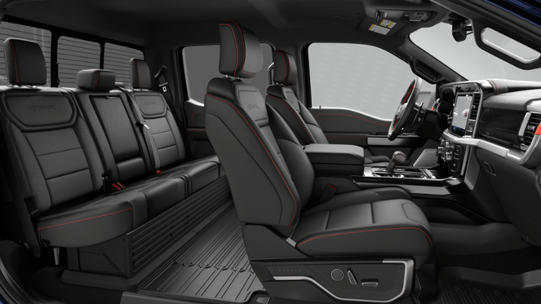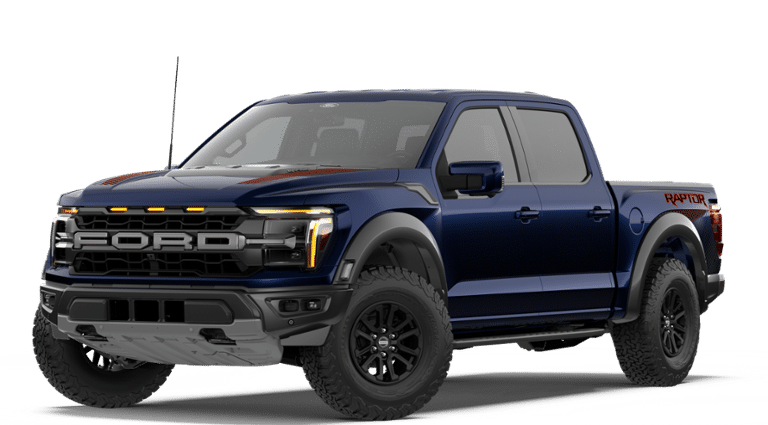 F-150 Raptor, Antimatter Blue Metallic, Black w/Leather Trimmed Seats, 14 Speakers, 17" Cast Aluminum Wheels, Air Conditioning, AM/FM radio: SiriusXM with 360L, Auto High-beam Headlights, Automatic temperature control, Brake assist, Delay-off headlights, Electronic Locking with 4.10 Axle Ratio, Electronic Stability Control, Equipment Group 801A Standard, Ford Connectivity Package (1-Year Included), Front Bucket Seats, Front Center Armrest, Front dual zone A/C, Front fog lights, Fully automatic headlights, Heated front seats, Heated rear seats, Internet access capable: 5G Modem - Ford Connectivity Package, Lane Departure Warning System, Leather Trimmed Seats, Memory seat, Navigation system: Connected Navigation, Panic alarm, Pedal memory, Power driver seat, Power passenger seat, Power steering, Power windows, Radio data system, Radio: B&O Unleashed Sound System by Bang & Olufsen, Rear window defroster, Remote keyless entry, Security system, Split folding rear seat, Steering wheel memory, Steering wheel mounted audio controls, SYNC 4 with Enhanced Voice Recognition, Telescoping steering wheel, Tilt steering wheel, Trip computer, Ventilated front seats.