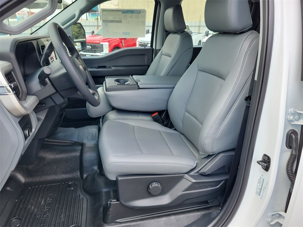 This 2026 Ford F-350SD XL DRW in Oxford White comes with the following features: Power Stroke 6.7L V8 DI 32V OHV Turbodiesel 10-Speed Automatic 4WD F-350 SuperDuty XL DRW, Oxford White, Medium Dark Slate Vinyl, ABS brakes, Compass, Heated door mirrors, Illuminated entry, Low tire pressure warning, Remote keyless entry, and Traction control Ford Connectivity Package (1-Year Included), GVWR: 14,000 lb Payload Package, Internet access capable: 5G Modem - Ford Connectivity Package, F-350 SuperDuty XL DRW, Oxford White, Medium Dark Slate Vinyl, ABS brakes, Compass, Heated door mirrors, Illuminated entry, Low tire pressure warning, Remote keyless entry, Traction control, 3.73 Axle Ratio, 4-Wheel Disc Brakes, Air Conditioning, Brake assist, Delay-off headlights, Dual front impact airbags, Dual front side impact airbags, Dual rear wheels, Emergency communication system: SYNC 4 911 Assist, Front anti-roll bar, Front reading lights, Fully automatic headlights, Outside temperature display, Overhead airbag, Overhead console, Panic alarm, Passenger vanity mirror, Power door mirrors, Power steering, Power windows, Rear anti-roll bar, Rear reading lights, Security system, Speed control, Split folding rear seat, Steering wheel mounted audio controls, Tachometer, Telescoping steering wheel, Tilt steering wheel, Trip computer, Turn signal indicator mirrors, and Variably intermittent wipers.