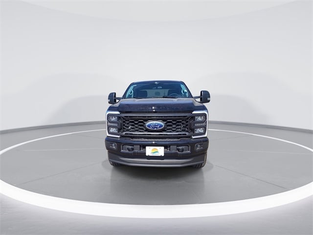 F-250 SuperDuty XL STX, 4WD, Black, Medium Dark Slate w/Cloth 40/20/40 Split Bench Seat, 17" Argent Painted Steel Wheels, 6 Speakers, ABS brakes, Air Conditioning, AM/FM radio, Body-Color Front Bumper, Body-Color Rear Bumper, Brake assist, Cloth 40/20/40 Split Bench Seat, Color-Coordinated Full Carpet with Floor Mats, Compass, Delay-off headlights, Electronic Stability Control, Electronic-Locking with 3.31 Axle Ratio, Exterior Parking Camera Rear, Ford Connectivity Package (1-Year Included), Fully automatic headlights, GVWR: 10,000 Lb Payload Package, HD Vinyl 40/20/40 Split Bench Seat, Heated door mirrors, Illuminated entry, Internet access capable: 5G Modem - Ford Connectivity Package, LED Fog Lamps, Low tire pressure warning, Order Code 600A, Painted Grille, Panic alarm, Power steering, Power windows, Radio: AM/FM Stereo with MP3 Player, Remote keyless entry, Security system, Speed control, Steering wheel mounted audio controls, STX Appearance Package, SYNC 4, Telescoping steering wheel, Tilt steering wheel, Traction control, Wheels: 18" Ebony Black Painted Aluminum.