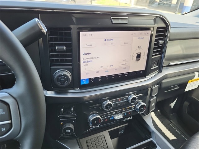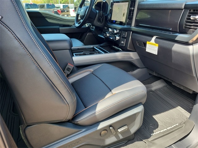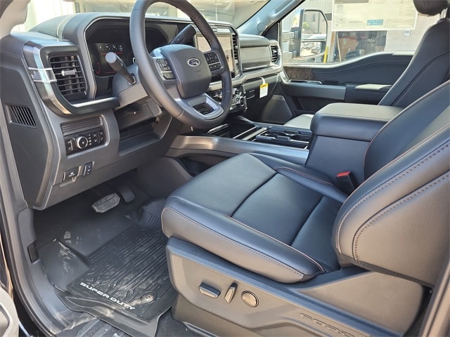 F-350 SuperDuty Lariat, Power Stroke 6.7L V8 DI 32V OHV Turbodiesel, Black Metallic, Black Onyx w/Front ActiveX Trimmed 40/Console/40 Seats, 6" Angular Bright Anodized Step Bars, 8 Speakers, ABS brakes, Adjustable pedals, Air Conditioning, Alloy wheels, AM/FM radio: SiriusXM with 360L, Auto High-beam Headlights, Auto-dimming Rear-View mirror, Automatic temperature control, BLIS w/Cross-Traffic Alert, Brake assist, Chrome Door Handles, Chrome Exhaust Tip, Chrome Package, Compass, Delay-off headlights, Driver door bin, Driver vanity mirror, Electronic Stability Control, Electronic-Locking w/3.55 Axle Ratio, Flow-Through Console, Ford Connectivity Package (1-Year Included), Front ActiveX Trimmed 40/Console/40 Seats, Front Bucket Seats, Front Center Armrest, Front dual zone A/C, Front fog lights, Front reading lights, Fully automatic headlights, Garage door transmitter, Heated door mirrors, Heated front seats, Heated rear seats, Heated steering wheel, Illuminated entry, Internet access capable: 5G Modem - Ford Connectivity Package, Lane Departure Warning System, Lariat Premium Package, Low tire pressure warning, Memory seat, Navigation system: Connected Navigation, Order Code 618A, Panic alarm, Pedal memory, Power door mirrors, Power driver seat, Power passenger seat, Power steering, Power windows, Power-Sliding Rear-Window w/Defrost, Privacy Glass, Pro Trailer Backup Assist, Pro Trailer Hitch Assist, Radio: B&O Sound System by Bang & Olufsen, Rear Parking Sensors, Rear reading lights, Rear seat center armrest, Rear step bumper, Rear window defroster, Remote keyless entry, Security system, SiriusXM w/360L, Split folding rear seat, Steering wheel mounted audio controls, SYNC 4 w/Enhanced Voice Recognition, Tachometer, Telescoping steering wheel, Tilt steering wheel, Traction control, Trip computer, Turn signal indicator mirrors, Unique Chrome Mirror Caps, Ventilated front seats, Wheels: 20" Chrome PVD Aluminum.