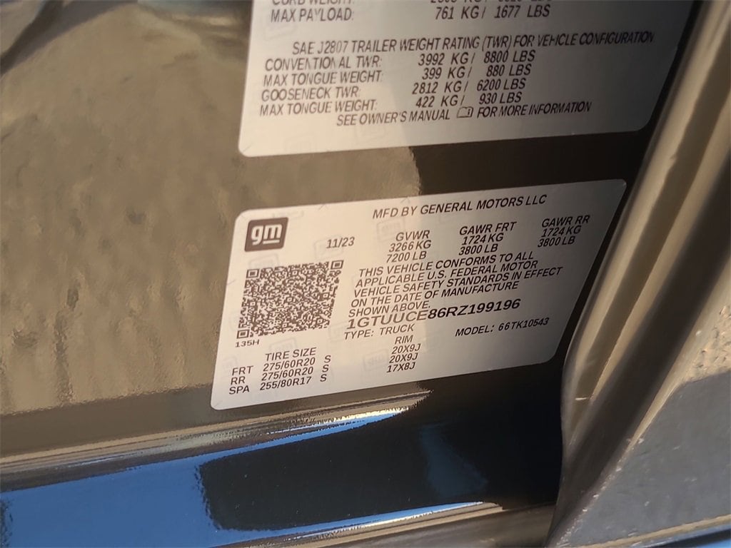 This 2024 GMC Sierra 1500 Elevation in Deep Bronze Metallic comes with the following features: 3.0L I6 10-Speed Automatic 4WD 10-Speed Automatic, 4WD, and Black Cloth Cloth Rear Seat w/Storage Package, High Capacity Suspension Package, Preferred Equipment Group 3SB (120-Volt Bed Mounted Power Outlet, 120-Volt Interior Power Outlet, 2 Charge/Data USB Ports, 2 Type-C Charge-Only Rear USB Ports, 6-Speaker Audio System Feature, Auto-Locking Rear Differential, Body Color Header w/Gloss Black Mesh Grille Bars, Color-Keyed Carpeting Floor Covering, Deep-Tinted Glass, Electric Rear-Window Defogger, Front Frame-Mounted Black Recovery Hooks, Front Rubberized-Vinyl Floor Mats, GMC Connected Access Capable, HD Rear Vision Camera, Keyless Open & Start, LED Cargo Area Lighting, Manual Tilt-Wheel & Telescoping Steering Column, OnStar & GMC Connected Services Capable, Power Door Locks, Power Front Windows w/Driver Express Up/Down, Power Front Windows w/Passenger Express Down, Power Rear Windows w/Express Down, Push Button Start, Rear Rubberized-Vinyl Floor Mats, Remote Vehicle Starter System, SiriusXM w/360L, Steering Wheel Audio Controls, Theft Deterrent System (Unauthorized Entry), and Wi-Fi Hotspot Capable), Trailering Package (Hitch Guidance), X31 Off-Road Package (Dual Exhaust System, Heavy-Duty Air Filter, Hill Descent Control, Off-Road Suspension, Rear Wheelhouse Liners, and X31 Hard Badge), 10-Speed Automatic, 4WD, Black Cloth, 10-Way Power Driver Seat Adjuster w/Lumbar, 2 Charge/Data USB Ports Inside Center Console, 220 Amp Alternator, 4-Way Manual Passenger Seat Adjuster, 4-Wheel Disc Brakes, 6 Speakers, ABS brakes, Air Conditioning, Alloy wheels, AM/FM radio: SiriusXM with 360L, Apple CarPlay/Android Auto, Auto High-beam Headlights, Automatic Emergency Braking, Automatic temperature control, Brake assist, Buckle to Drive, Bumpers: body-color, Cloth Seat Trim, Compass, Delay-off headlights, Driver door bin, Driver vanity mirror, Dual front impact airbags, Dual front side impact airbags, Electronic Precision Shift, Electronic Stability Control, Engine Block Heater, Floor-Mounted Center Console, Following Distance Indicator, Forward Collision Alert, Front 40/20/40 Split-Bench Seat, Front anti-roll bar, Front Bucket Seats, Front Center Armrest w/Storage, Front dual zone A/C, Front fog lights, Front License Plate Kit, Front Pedestrian Braking, Front reading lights, Front wheel independent suspension, Fully automatic headlights, Genuine wood dashboard insert, Heated door mirrors, Heated Driver & Front Outboard Passenger Seating, Heated front seats, Heated steering wheel, Illuminated entry, IntelliBeam Automatic High Beam On/Off, Lane Keep Assist w/Lane Departure Warning, Low tire pressure warning, Navigation System, Occupant sensing airbag, Outside temperature display, Overhead airbag, Overhead console, Panic alarm, Passenger door bin, Passenger vanity mirror, Power door mirrors, Power driver seat, Power steering, Power windows, Premium audio system: GMC Infotainment System, Radio data system, Radio: Premium GMC Infotainment Audio System, Rear reading lights, Rear seat center armrest, Rear step bumper, Rear window defroster, Remote keyless entry, Security system, Speed control, Speed-sensing steering, Split folding rear seat, Standard Tailgate, Steering wheel mounted audio controls, Tachometer, Telescoping steering wheel, Tilt steering wheel, Traction control, Trip computer, Variably intermittent wipers, Voltmeter, Wheels: 20 x 9 High Gloss Black Painted Aluminum, Wireless Apple CarPlay/Wireless Android Auto, and Wireless Charging.