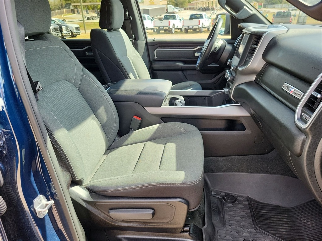 This 2022 Ram 1500 Big Horn/Lone Star in Patriot Blue Pearlcoat comes with the following features: 3.6L V6 24V VVT 8-Speed Automatic 4WD Big Horn Level 1 Equipment Group (2nd Row In Floor Storage Bins, 4G LTE Wi-Fi Hot Spot, 8.4" Touchscreen Display, Apple CarPlay, Auto-Dimming Exterior Driver Mirror, Auto-Dimming Rear-View Mirror, Black Exterior Mirrors, Black Premium Power Mirrors, Bluetooth Handsfree Phone & Audio, Class IV Receiver Hitch, Cluster 3.5" TFT Color Display, Connectivity - US/Canada, Convex Wide-Angle Mirror Insert, Exterior Mirrors Courtesy Lamps, Exterior Mirrors w/Heating Element, Exterior Mirrors w/Supplemental Signals, For Details, Visit DriveUconnect.com, Global Telematics Box Module (TBM), Glove Box Lamp, Google Android Auto, GPS Antenna Input, Integrated Center Stack Radio, Power 2-Way Driver Lumbar Adjust, Power 8-Way Driver Seat, Power Adjustable Pedals, Power-Folding Mirrors, Radio: Uconnect 5 W w/8.4" Display, Rear Dome w/On/Off Switch Lamp, Rear Power Sliding Window, Rear Window Defroster, SiriusXM Radio Service, SiriusXM Satellite Radio, Sun Visors w/Illuminated Vanity Mirrors, Universal Garage Door Opener, and USB Host Flip), Quick Order Package 23R Lone Star (Regional) (Lone Star Badge), Sport Appearance Package (3 Rear Seat Head Restraints, 4 Way Front Headrests, All Plant-Installed Decals, Black Interior Accents, Body Color Exterior Mirrors, Body Color Front Bumper, Body Color Premium Power Mirrors, Body Color Rear Bumper w/Step Pads, Bridgestone Brand Tires, Bucket Seats, Delete LED Lamp - Floor Console Bin, Deluxe Cloth Bucket Seats, Front Seat Back Map Pockets, Full Length Floor Console, Manual Adjust 4-Way Front Passenger Seat, Rear 60/40 Folding Seat, Rear Center Armrest, and Sport Decal), 3.21 Rear Axle Ratio, 4-Wheel Disc Brakes, 48V Belt Starter Generator, 6 Speakers, ABS brakes, Air Conditioning, Alloy wheels, AM/FM radio, Brake assist, Bumpers: chrome, Cloth Bench Seat, Cluster 7.0" TFT Color Display, Compass, Connected Services Delete Credit, Delay-off headlights, Driver door bin, Dual front impact airbags, Dual front side impact airbags, Electronic Stability Control, Emergency communication system: SiriusXM Guardian, Front anti-roll bar, Front Center Armrest w/Storage, Front fog lights, Front License Plate Bracket, Front reading lights, Front wheel independent suspension, Fully automatic headlights, Heated door mirrors, Heavy-Duty Engine Cooling, Illuminated entry, Integrated Voice Command w/Bluetooth, Leather steering wheel, Low tire pressure warning, Manufacturer's Statement of Origin, MOPAR Front & Rear Rubber Floor Mats, Occupant sensing airbag, Outside temperature display, Overhead airbag, Overhead console, Panic alarm, ParkView Rear Back-Up Camera, Passenger door bin, Passenger vanity mirror, Power door mirrors, Power steering, Power windows, Radio data system, Radio: Uconnect 3 w/5" Display, Rear anti-roll bar, Rear seat center armrest, Rear step bumper, Remote keyless entry, Speed control, Split folding rear seat, Steering wheel mounted audio controls, Tachometer, Telescoping steering wheel, Tilt steering wheel, Traction control, Trip computer, Variably intermittent wipers, Voltmeter, Wheels: 18" x 8" Cast-Aluminum Painted, and Wheels: 20" x 9" Aluminum Chrome Clad (WRK)