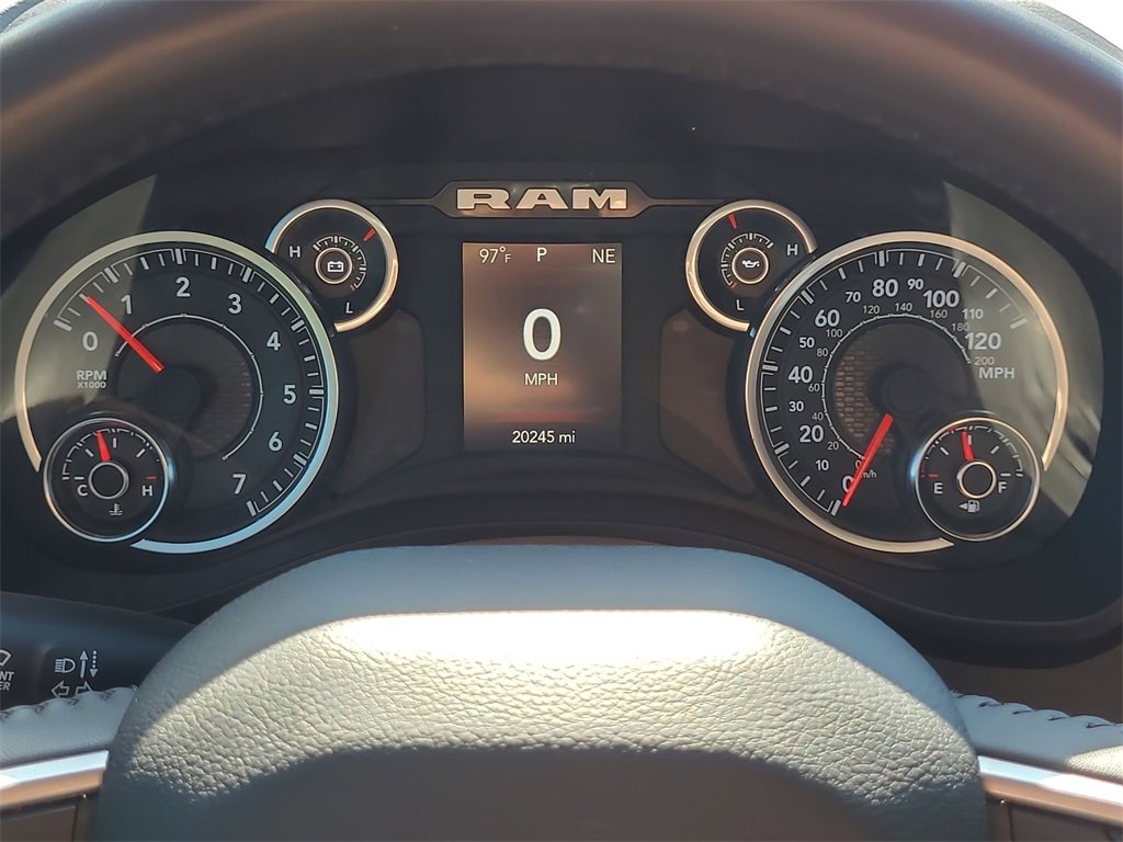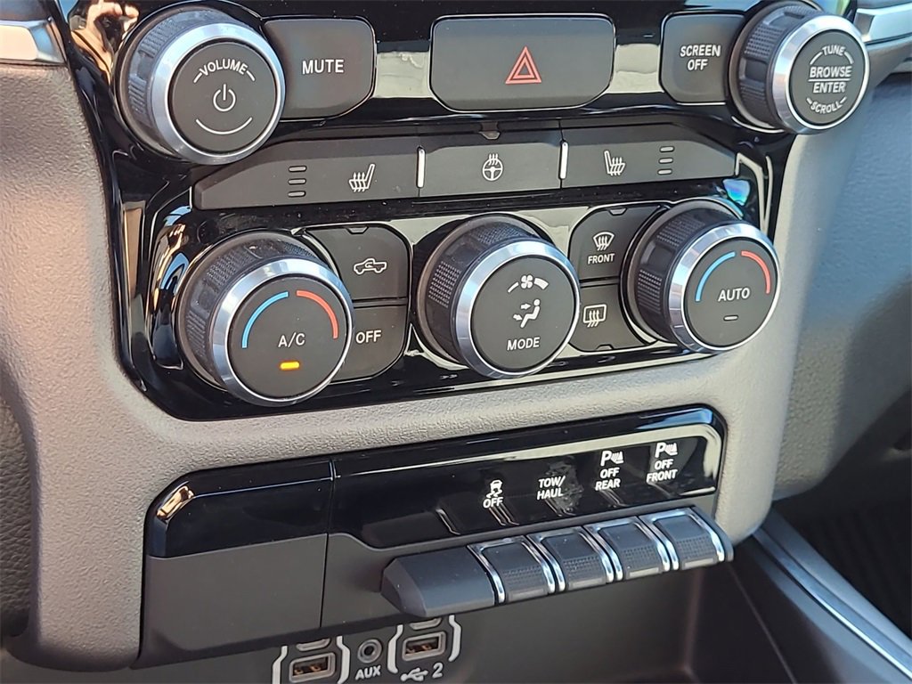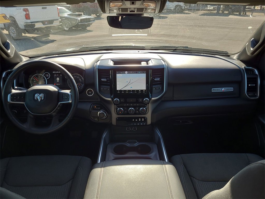 This 2024 Ram 1500 Big Horn/Lone Star in Granite Crystal Metallic Clearcoat comes with the following features: HEMI 5.7L V8 Multi Displacement VVT eTorque 8-Speed Automatic RWD Big Horn Level 1 Equipment Group (2nd Row In Floor Storage Bins, 4G LTE Wi-Fi Hot Spot, Apple CarPlay, Auto-Dimming Exterior Driver Mirror, Auto-Dimming Rear-View Mirror, Black Premium Power Mirrors, Bluetooth Handsfree Phone & Audio, Class IV Receiver Hitch, Connectivity - US/Canada, Convex Wide-Angle Exterior Mirror Insert, Exterior Mirrors Courtesy Lamps, Exterior Mirrors w/Heating Element, Exterior Mirrors w/Supplemental Signals, For Details, Visit DriveUconnect.com, For More Info, Call 800-643-2112, Front Fog Lamps, Global Telematics Box Module (TBM), Glove Box Lamp, Google Android Auto, Heated Front Seats, Heated Steering Wheel, Passenger Sun Visor w/Illuminated Mirror, Power-Folding Mirrors, Radio: Uconnect 5 W w/8.4 Display, Rear Dome w/On/Off Switch Lamp, Rear Power Sliding Window, Rear Window Defroster, SiriusXM Radio Service, SiriusXM Satellite Radio, and USB Host Flip), Quick Order Package 27R Lone Star (Regional) (Lone Star Badge), Sport Appearance Package (3 Rear Seat Head Restraints, 4 Way Front Headrests, Black Interior Accents, Body Color Door Handles, Body Color Exterior Mirrors, Body Color Front Bumper, Body Color Premium Power Mirrors, Body Color Rear Bumper w/Step Pads, Bucket Seats, Deluxe Cloth Bucket Seats, Front Seat Back Map Pockets, Full Length Floor Console, Grille Surround 1 Body Color Texture 2 Black, Manual Adjust 4-Way Front Passenger Seat, Power 2-Way Driver Lumbar Adjust, Power 8-Way Driver Seat, RAM Grille Badge - Chrome, Rear 60/40 Folding Seat, and Rear Center Armrest), 3.21 Rear Axle Ratio, 4-Wheel Disc Brakes, 48V Belt Starter Generator, 6 Speakers, ABS brakes, Air Conditioning, Air Conditioning ATC w/Dual Zone Control, All R1 High Radios, All Radio Equipped Vehicles, Alloy wheels, AM/FM radio, Anti-Spin Differential Rear Axle, Brake assist, Bumpers: chrome, Cloth Bench Seat, Compass, Connected Travel & Traffic Services, Delay-off headlights, Driver door bin, Dual front impact airbags, Dual front side impact airbags, Electronic Stability Control, Emergency communication system: RAM Connect, Exterior Parking Camera Rear, Front anti-roll bar, Front Center Armrest w/Storage, Front License Plate Bracket, Front reading lights, Front wheel independent suspension, Fully automatic headlights, GPS Navigation, HD Radio, Heated door mirrors, Illuminated entry, Integrated Voice Command w/Bluetooth, Leather steering wheel, Low tire pressure warning, Manufacturer's Statement of Origin, MOPAR Front & Rear Rubber Floor Mats, Occupant sensing airbag, Outside temperature display, Overhead airbag, Overhead console, Panic alarm, ParkSense Front/Rear Park Assist w/Stop, Passenger door bin, Passenger vanity mirror, Power door mirrors, Power steering, Power windows, Radio data system, Radio: Uconnect 3 w/5 Display, Radio: Uconnect 5 Nav w/8.4 Display, Rear anti-roll bar, Rear seat center armrest, Rear step bumper, Remote keyless entry, Remote Start System, SiriusXM w/360L, Speed control, Split folding rear seat, Steering wheel mounted audio controls, Tachometer, Telescoping steering wheel, Tilt steering wheel, Traction control, Trip computer, Variably intermittent wipers, Voltmeter, Wheels: 18 x 8 Cast-Aluminum Painted, and Wheels: 20 x 9 Aluminum Chrome ClaD.